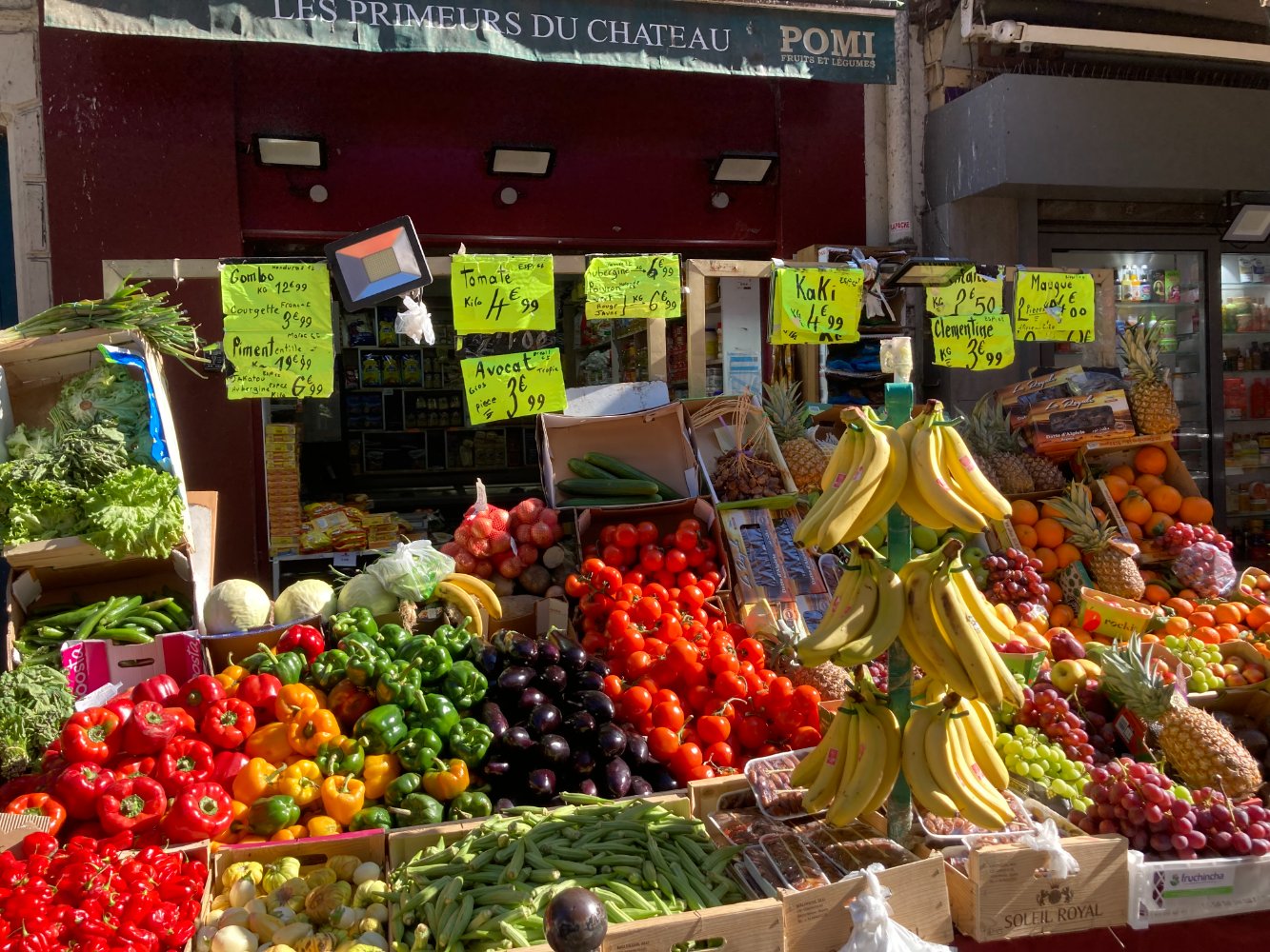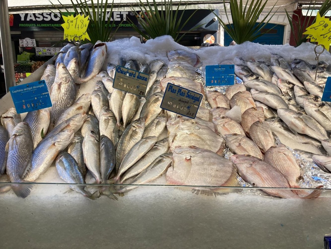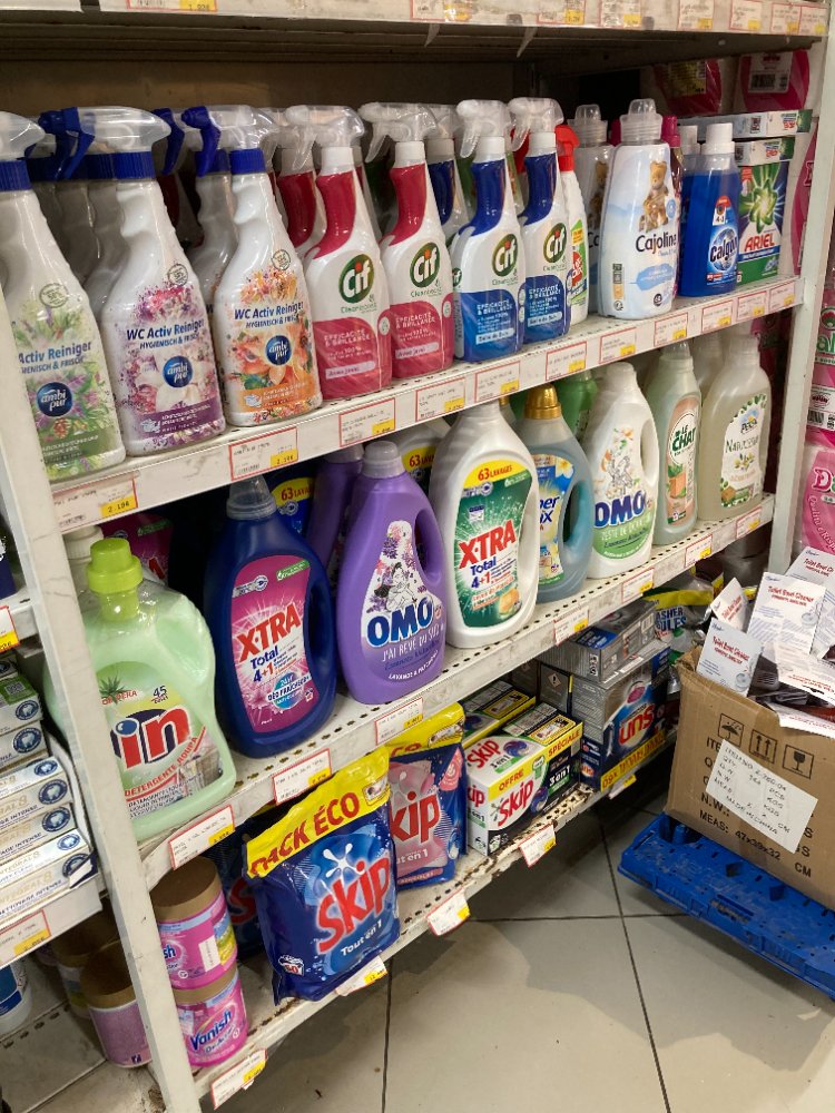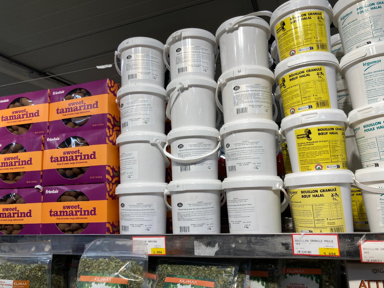 Au marché Château Rouge, on trouve essentiellement des produits alimentaires, mais aussi des magasins de cosmétiques, de tissus, d’accessoires, des drogueries….