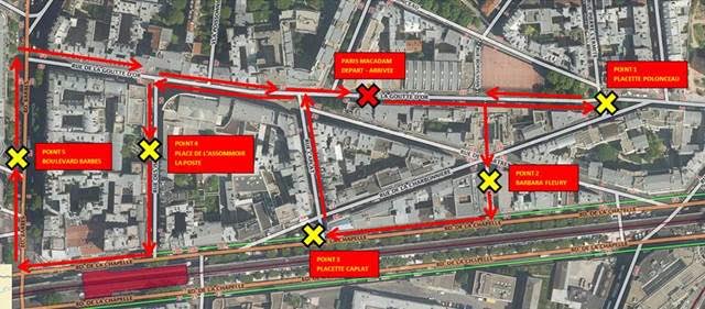 Deux marches exploratoires de femmes ont eu lieu fin juin et mi-juillet avec un vingtaine de femmes, permettant de parcourir le sud de la Goutte d’Or (cf. ci-dessous) et de relever « ce qui va » et « ce qui ne va » tout en construisant ensemble des propositions d’amélioration.
