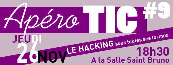 Pour sa neuvième édition, l’ApéroTIC organisé par La Goutte d’Ordinateur et la Salle Saint Bruno est cette fois consacré au Hacking sous toutes ses formes !