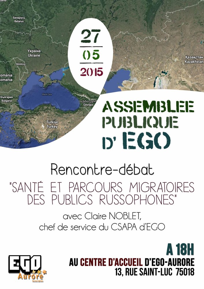 le mercredi 27 mai - de 18h00 à 20h00 - au 13, rue St. Luc, sur le thème : « Santé et parcours migratoires des publics russophones », avec Claire Noblet, chef de service du CSAPA d’EGO.