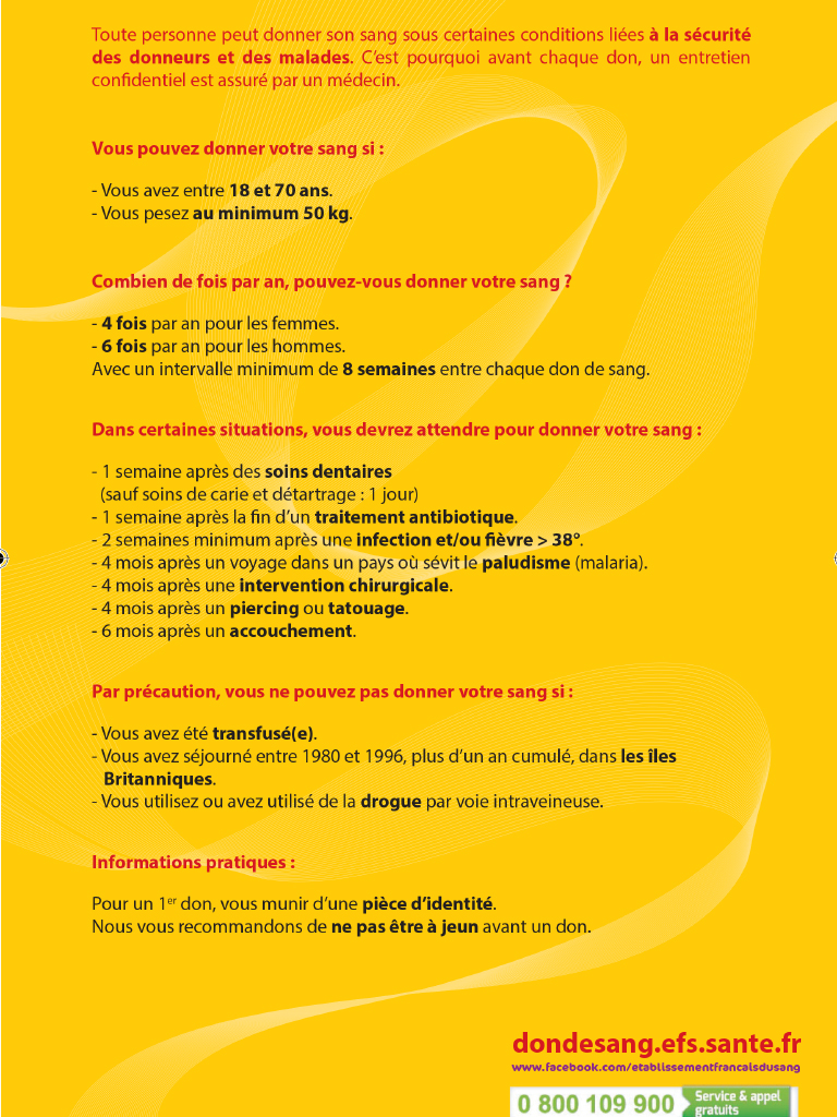 Les principales conditions à respecter pour pouvoir donner son sang : c’est ici