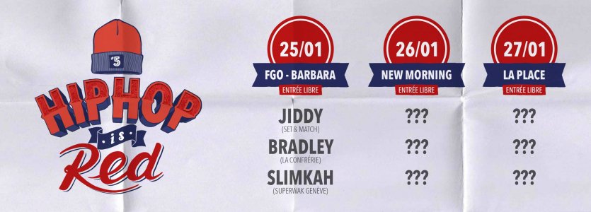 Depuis 2012, Hip Hop Is Red présente les artistes émergents de la scène hip hop et rap. Mercredi 25 janvier, à partir de 20h, le centre FGO-Barbara vous ouvre ses portes pour un concert en entrée libre et vous invite (re)découvrir trois jeunes talents nouvelle génération.
