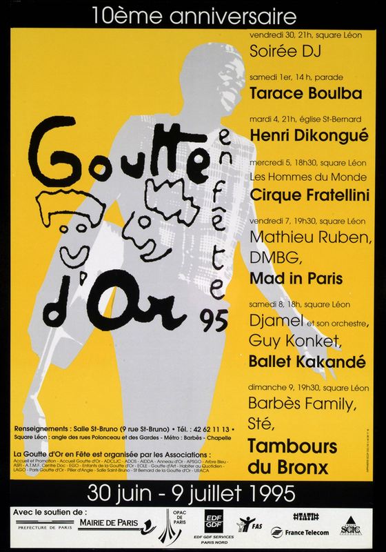 Fête de quartier devenue rapidement festival, elle renoue depuis quelques années avec sa volonté première de s’amuser tous ensemble dans une dimension plus modeste, habitants de tout âge et de toute culture. La Goutte d’Or en Fête est un repère important de la cohésion sociale du quartier, des valeurs d’ouverture et de diversité que les associations et les habitants s’attachent à renouveler chaque jour et que nous fêtons tous les ans depuis 30 ans.