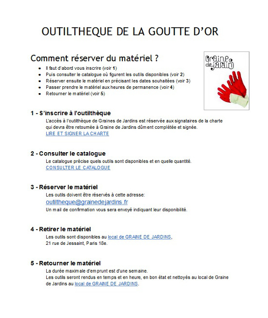 L’association Graine de Jardins fêtera l’inauguration de l’outilthèque de la Goutte d’Or le 29 novembre à 17h, au 21 rue de Jessaint.