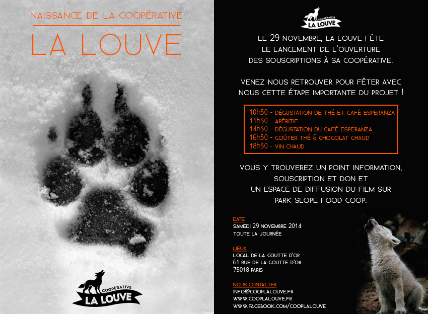 La Coopérative La Louve vous invite à une journée portes ouvertes dans son local provisoire au 61 rue de la Goutte d’Or (Paris 18e) le samedi 29 novembre !