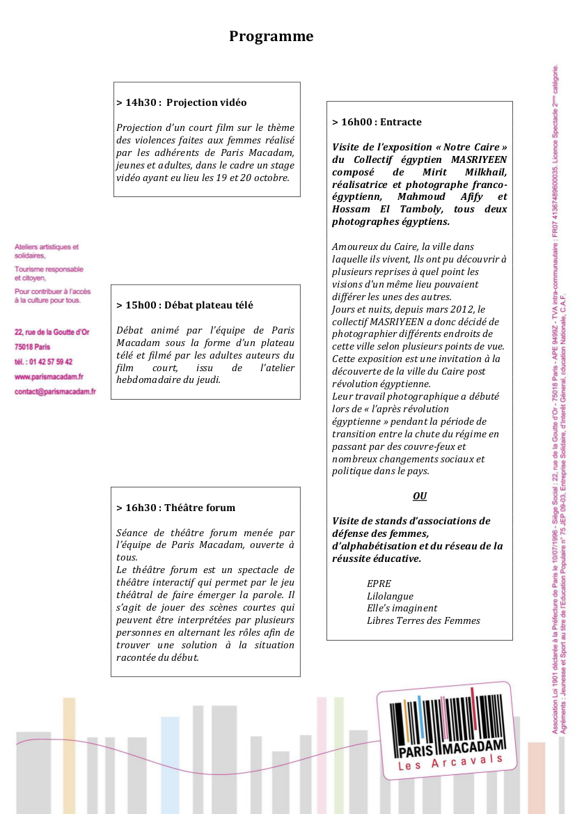 Paris Macadam met en place des ateliers participatif dans le cadre de la Journée de lutte contre les violences faites aux femmes, le mercredi 25 novembre.