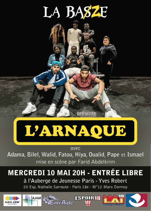 "L’arnaque" est une pièce de théâtre qui aborde d’une manière innovante, ludique et joyeuse les thématiques de solidarité, de fraternité, de valeurs de la République... Espoir 18 comptent sur vous pour encourager ces jeunes dans une initiative et une pratique nouvelles pour eux.