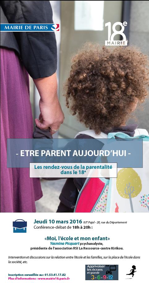 organisée par le RIF, Conférence-débat de 18h à 20h, autour du sujet : « Moi, l’école et mon enfant » et animée par Yasmina Picquart psychanalyste, présidente de l’association RSI La Ressource-centre Kirikou.