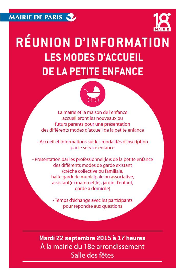 - Présentation par les professionnel(le)s de la petite enfance des différents modes de garde existant (crèche collective ou familiale, halte garderie municipale ou associative,