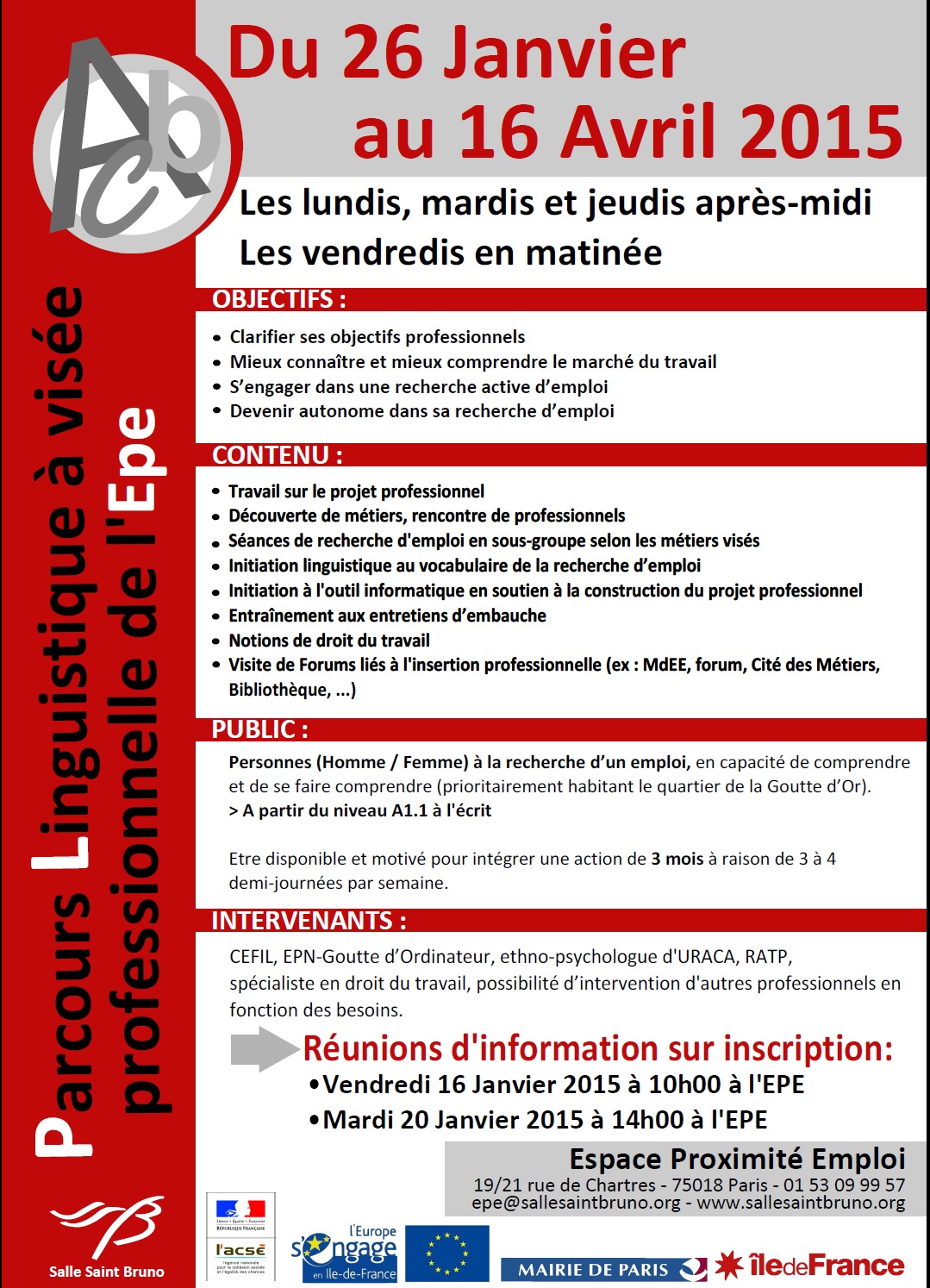 Les personnes intéressées peuvent être orientées à nos informations collectives des vendredi 16 janvier 10h ou mardi 20 janvier 14h. Une inscription à l’accueil est nécessaire.