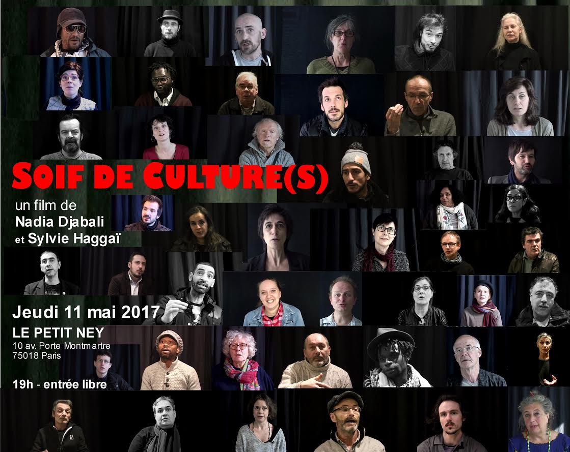 Dans le cadre d’une discussion autour de la place des artistes et de la culture dans les quartiers, vous êtes invités à la projection du film "Soif de culture(s), réalisé par Nadia Djabali et Sylvie Haggaï avec la participation de 48 habitants de la Goutte d’Or (58mn), le jeudi 11 mai, à partir de 19h, au Petit Ney.