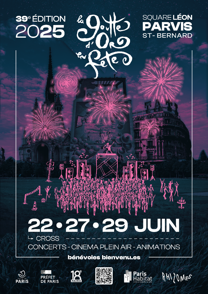 L’équipe de la Goutte d’Or en Fête tient à remercier chaleureusement l’ensemble des personnes qui ont contribué à la splendeur de cette édition : les bénévoles, les artistes, les associations et structures locales, les salarié·es, les technicien·nes, le public... Ces moments de célébration, d’échanges, de découvertes et de joie collective sont précieux.