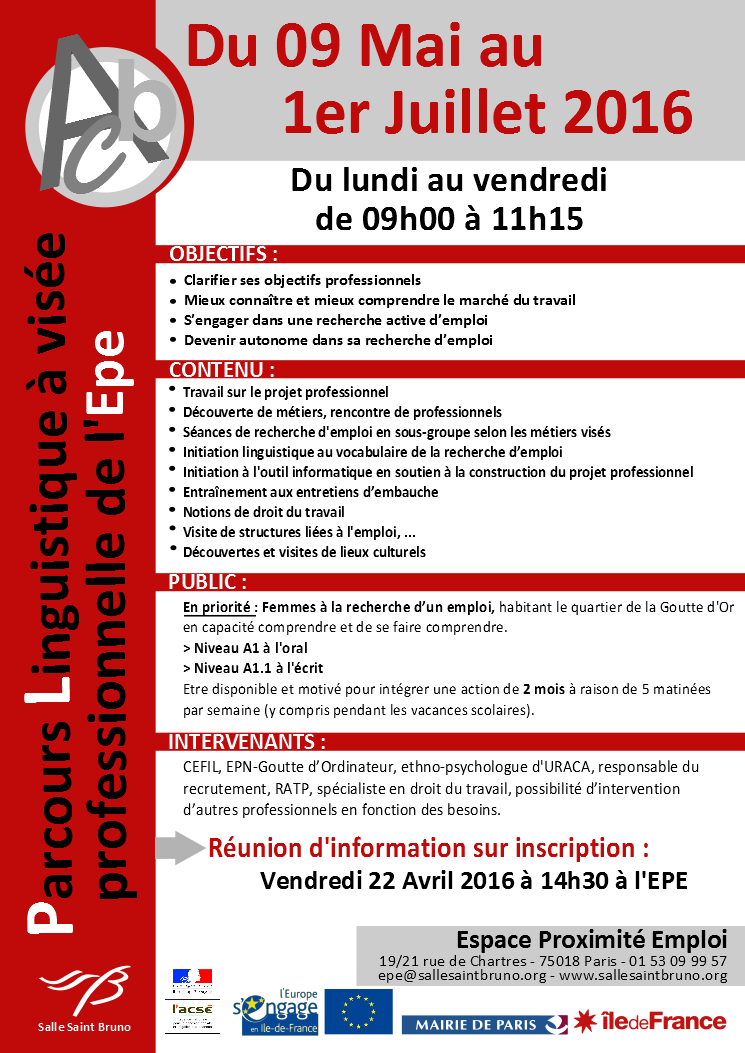Parcours linguistique vers l’Emploi Mai_Juillet_2016