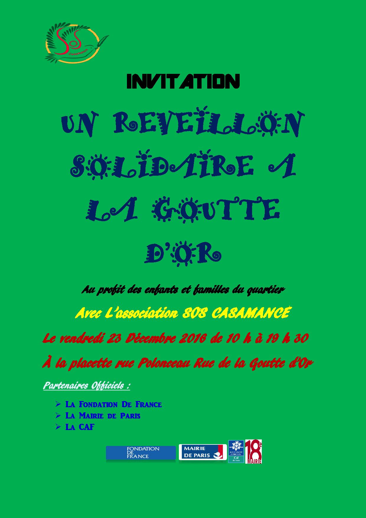 L’association SOS Casamance invite les enfants et les familles du quartier à son réveillon solidaire le vendredi 23 décembre, de 10h à 19h30, à l’angle de la rue Polonceau et de la rue de la Goutte d’Or.